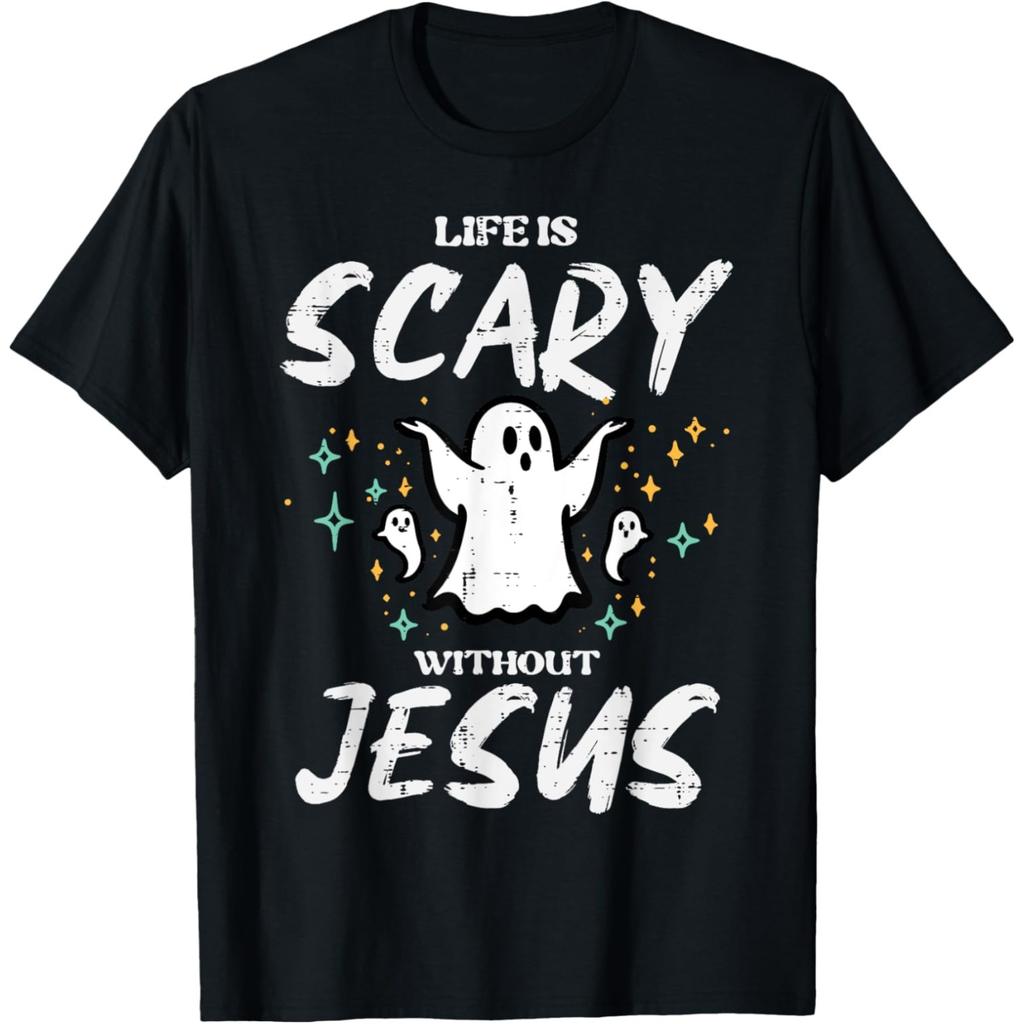 Halloween Life Without Jesus Christian Faith T Shirts Men Cotton Humor Streetwear Tee Shirt Short Sleeve Unisex Loose Clothing