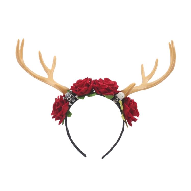 Chic photo props, Halloween deer horn headband with skull and flower ,draw other's attention,make you look more beautiful and charming.