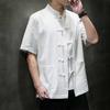 Men's Chinese Style Linen Shirt Short Sleeve Manin Collar Frog Button Casual Top
