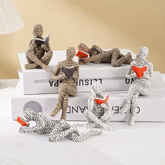 Abstract Reading Men Figurine Modern Sitting Lying Letter Man Statue Home Office Study Room Artistic Decoration Ornament