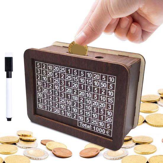Transform saving from a chore into a visual, rewarding journey. This elegant wooden money box is crafted from premium density board, offering a natural wood grain finish that adds a touch of timeless charm to any desk, shelf, or nightstand. More than just a coin bank, it features a unique built-in grid counter, allowing you to physically track your progress towards a savings goal by marking off each milestone. Watch your savings grow literally before your eyes! The printed numbered panels turn financial discipline into an engaging, motivational activity. It's perfect for teaching children the fundamentals of money management, helping teens save for their first big purchase, or aiding adults in budgeting for a special treat or vacation.