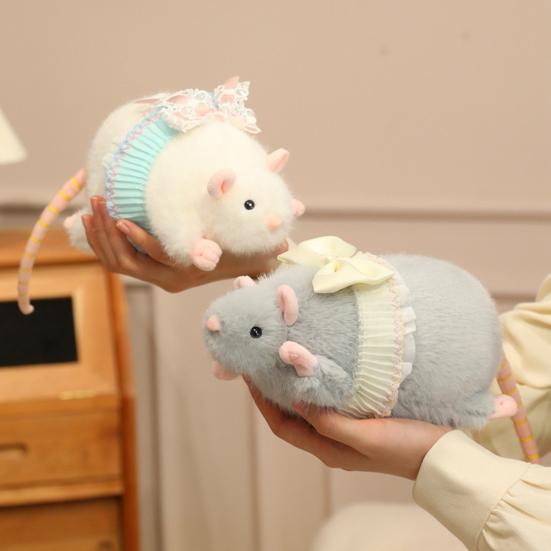 Fare Peluş Oyuncak Yumuşak Dolgulu Hayvan Sevimli Fare Bebek Dantelli Etek Fiyonk Süslemeli Çocuk Odası Masa Dekorasyonu İçin Dekoratif Peluş Fare Hediye