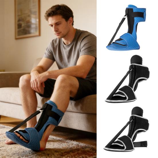 Effective Nighttime Support for Plantar Fasciitis Relief: By maintaining a gentle stretch on the plantar fascia during inactivity, this night splint helps reduce morning pain and stiffness associated with plantar fasciitis. It promotes improved blood circulation and decreases inflammation, accelerating tissue repair. Consistent use prevents tightening of the fascia, enhancing overall foot mobility and comfort.