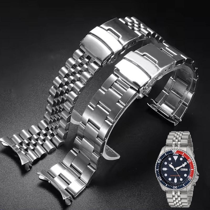 Stainless steel watch strap compatible For Seiko No. 5 Green Water Ghost SRPD63K1 skx007 009 SRPD63 arc mouth Watchband 20 /22mm
