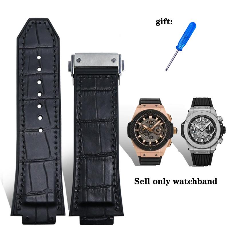 26X19mm Real Cow Leather Rubber Watchband for HUBLOT Classic Fusion Universe Big Bang Series Men belt Watch band butterfly Buckl