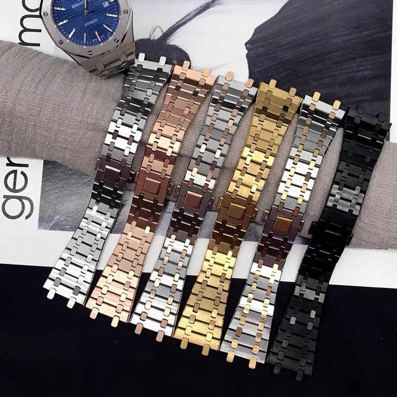 Watchbands 21mm 26mm Men Women Full Stainless Steel Bracelet For AP ROYAL OAK 15400 26331 15500 Watch Strap Folding Buckle