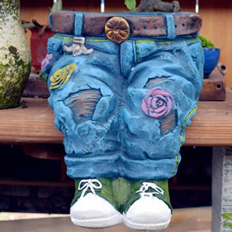 Q1FD Novelty Unique Jeans Flower Pot Container Lightweight Resin Planter Suitable For Patios Balcony Desktop Decoration