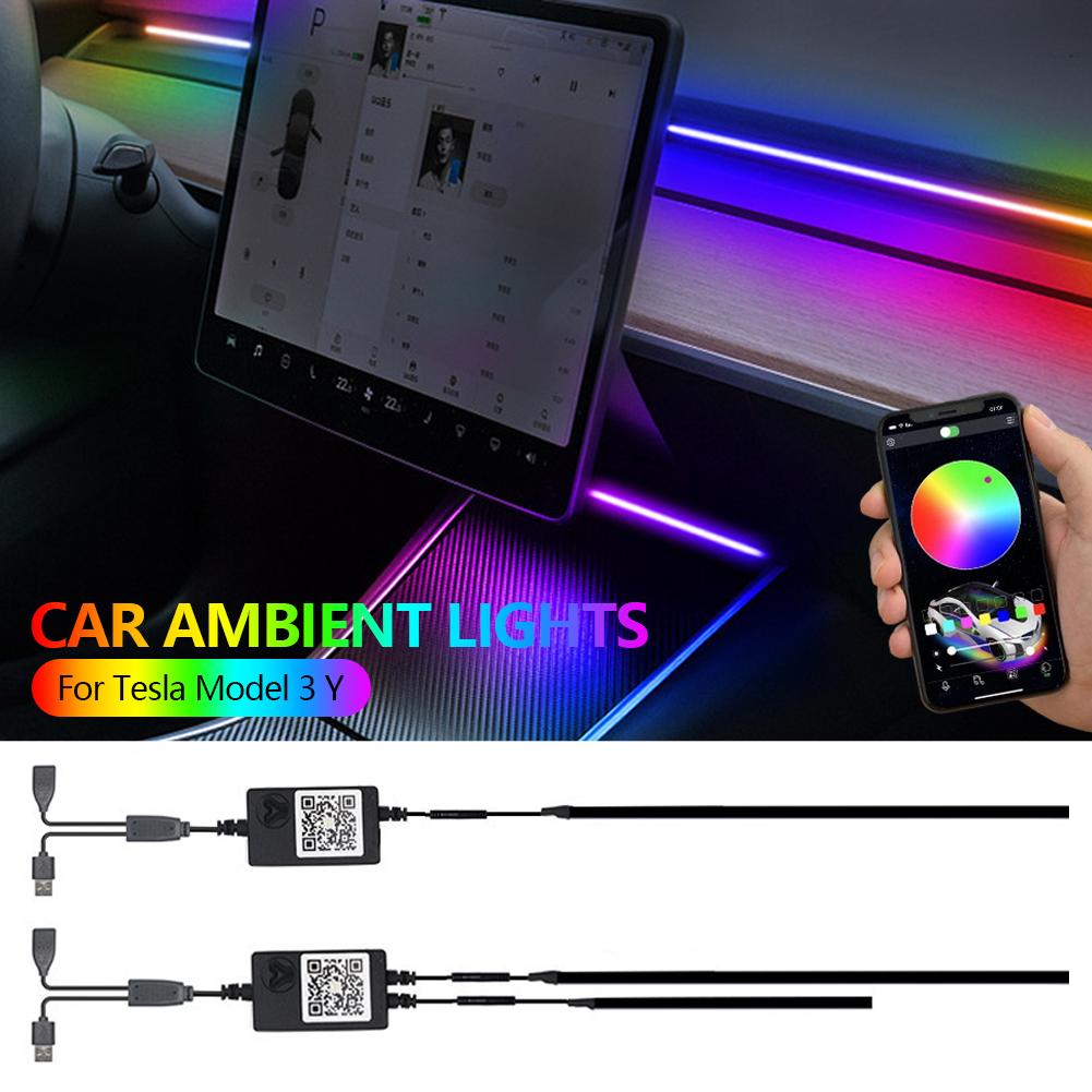 2 in 1 For Tesla Model 3 Y Car Ambient Lights USB APP Control Remote LED Interior Neon RGB Symphony Atmosphere Decorative Lamp