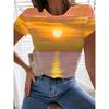 Women's Fashion Short-Sleeve T-Shirt Casual Comfortable Sunset Print Tops Elegant Womens Round Neck Top Everyday Versatile Tees