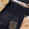Leopard Splicing Jeans Women Spring and Autumn Big Yards High-waisted Loose Skinny Design Sense Straight Towing Trousers Tide Long Denim Pants