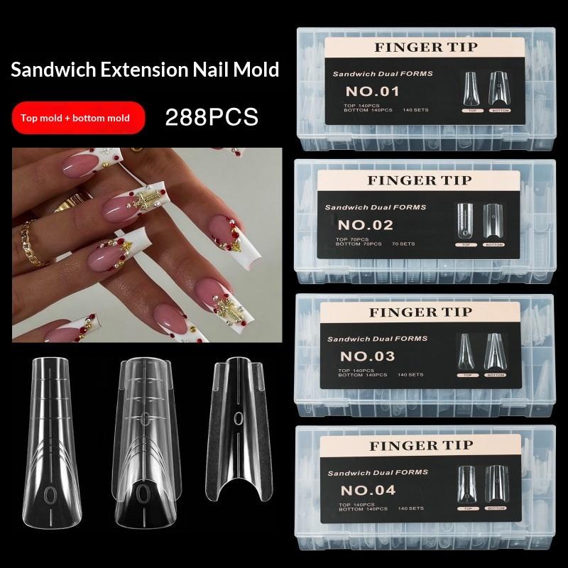 140/280Pcs Sandwich Dual Nail Forms Extensions-Dual Forms Top Bottom Mold Long Square Almond Nail Art Forms Manicure Tool
