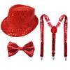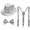 Performance Props: Sequined Hat, Tie, Gloves, Suspenders, Men's Suit Performance Props: Sequined Hat, Tie, Gloves, Suspenders, Men's Suit Premium Material: The glitter costume for men is made of high-quality fabrics with sparkling sequins.
