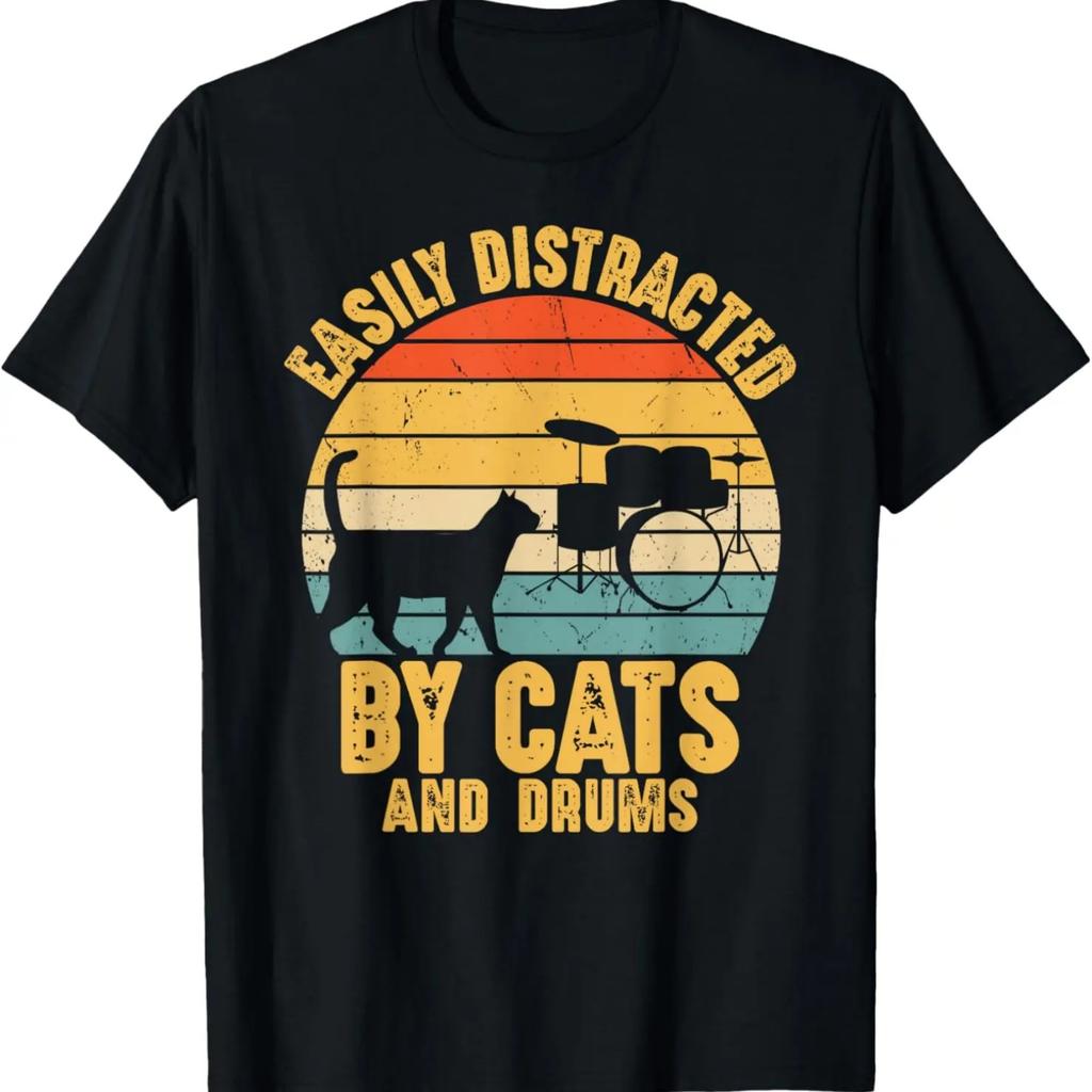 Easily Distracted by Cats and Drums Music Funny Drummer T-Shirt