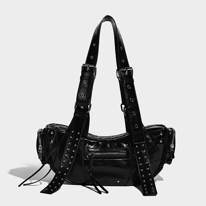 2025 High-End Motorcycle Bag Large Capacity Rivet Tassel Underarm Bag Street Style Cool Dark Series Handbag for Women