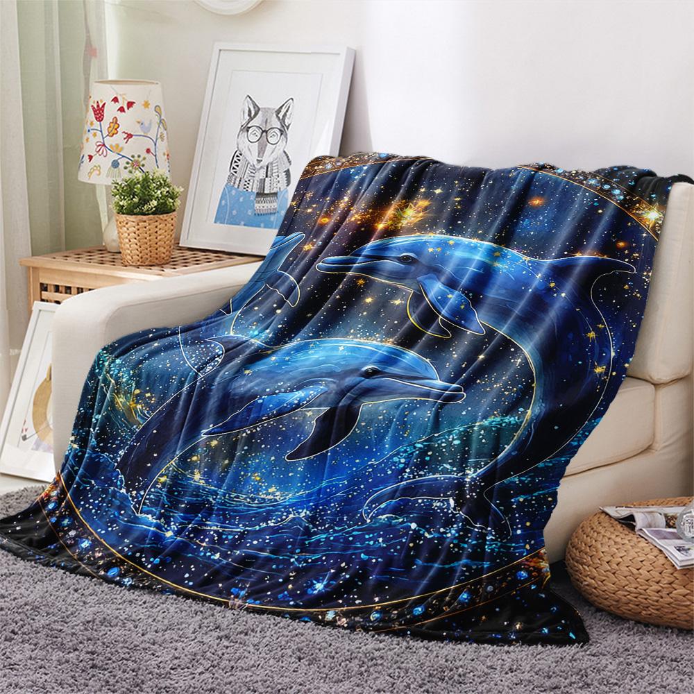 Dolphin Print Flannel Blanket, High quality Comfortable for All Seasons, Home Decor, Warmth and Comfort, Perfect for Christmas Gifts