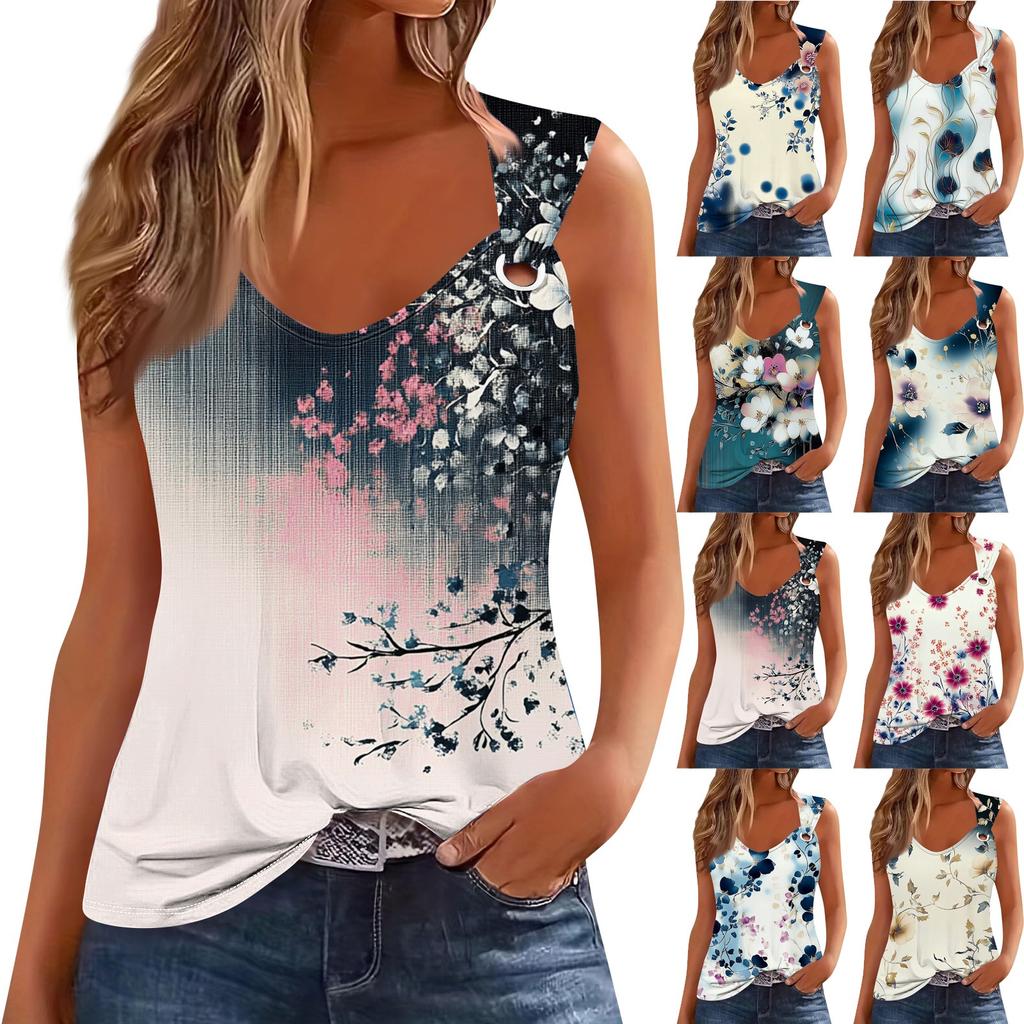 Womens Tank Top V Neck Basic Printed Casual Flowy Sleeveless Deep Side Cut Tops For Women