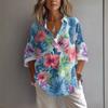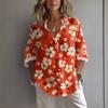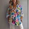 Women's Casual Spring And Summer Loose Printed Casual Sleeved Lapel Pullover Shirt
