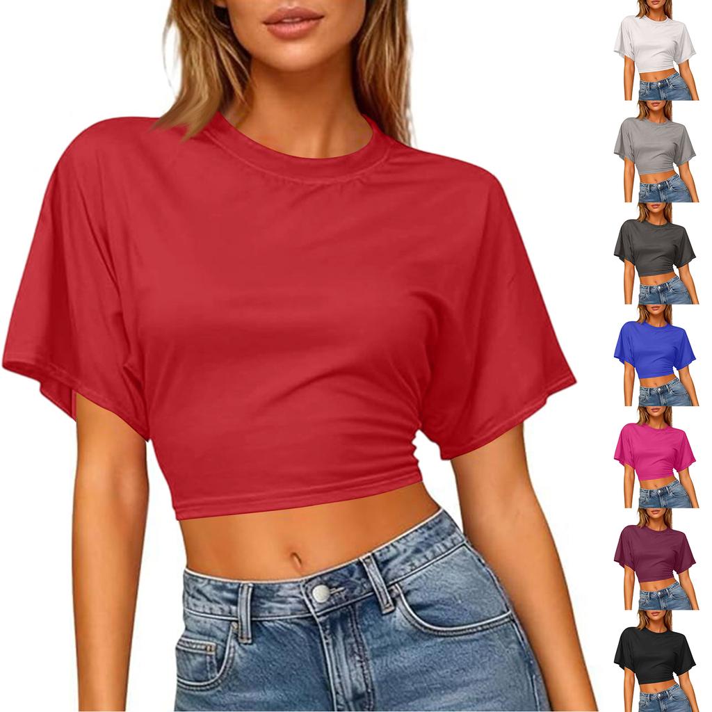 Women Workout Short Sleeve Crop Tops Sexy Backless Shirts