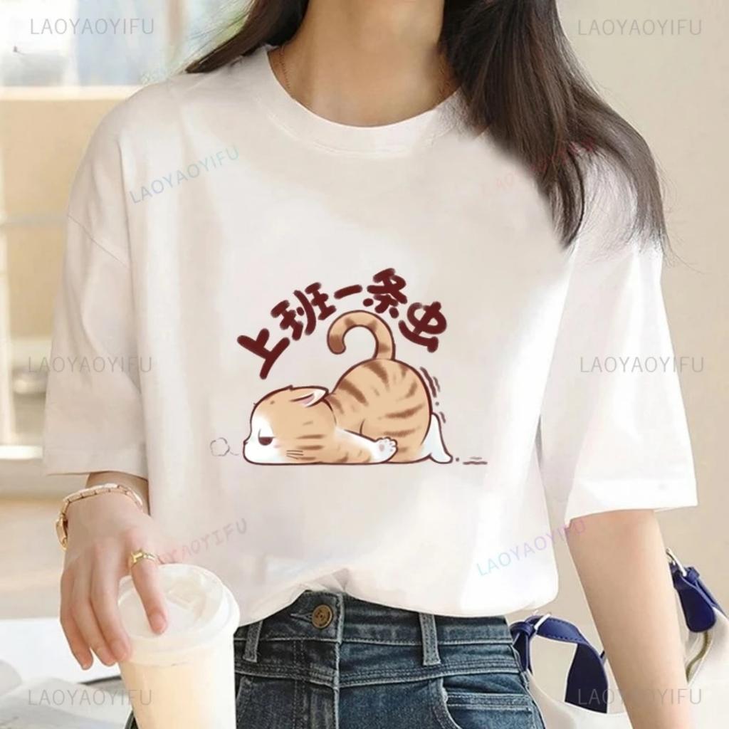 Summer Loose Casual Round Neck Short Sleeve High Quality Cartoon Cat Print T-shirt Street Fashion New Women's Cotton T-shirt