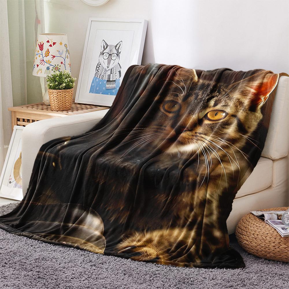 Tabby Cat Print Flannel Blanket, High quality Comfortable for All Seasons, Home Decor, Warmth and Comfort, Perfect for Christmas Gifts