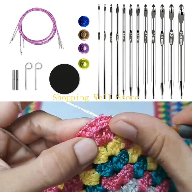 KX4B Tunisian Crochet Hook Set 3mm-10.0mm Crochet Set Interchangeable Crochet Hook with Storage Bag Knitting Supplies