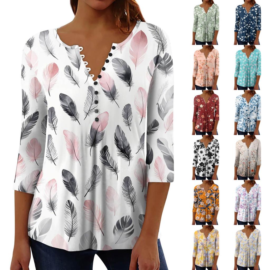 Women's Fashion Casual Pullover T-Shirt 3/4 Sleeve Printed Top description 1. Fabric: High quality imitation cotton 3/4 sleeves, the overall clothing fabric is breathable and elastic, very soft and comfortable, very smooth for the skin, and very comfortable to wear all day long 2. Design: Women's shirt, dress, casual top, round neck design, loose fit, and comfortable material 3. Matching: Pair with tight pants, jackets, jeans, capris, pants, or skirts in spring or summer to make you more elegant and feminine 4. Occasion: Women's fashionable shirts are suitable for , work, vacation, beach, school, outing, gathering, home and daily wear 5. 【 Washing and care 】: Wash and dry with cold water. Do not use excessively high water temperature during cleaning to avoid fading. Different monitors may have slight color differences when viewed. Please do not mind product information: Gender: Female Occasion: leisure, Material: Polyester, Spandex Pattern type: Print : casual and sexy Length: 3/4 sleeves Thickness: standard Cleaning method: wash hands in cold water, hang or dry You will get: 1 piece women's Top