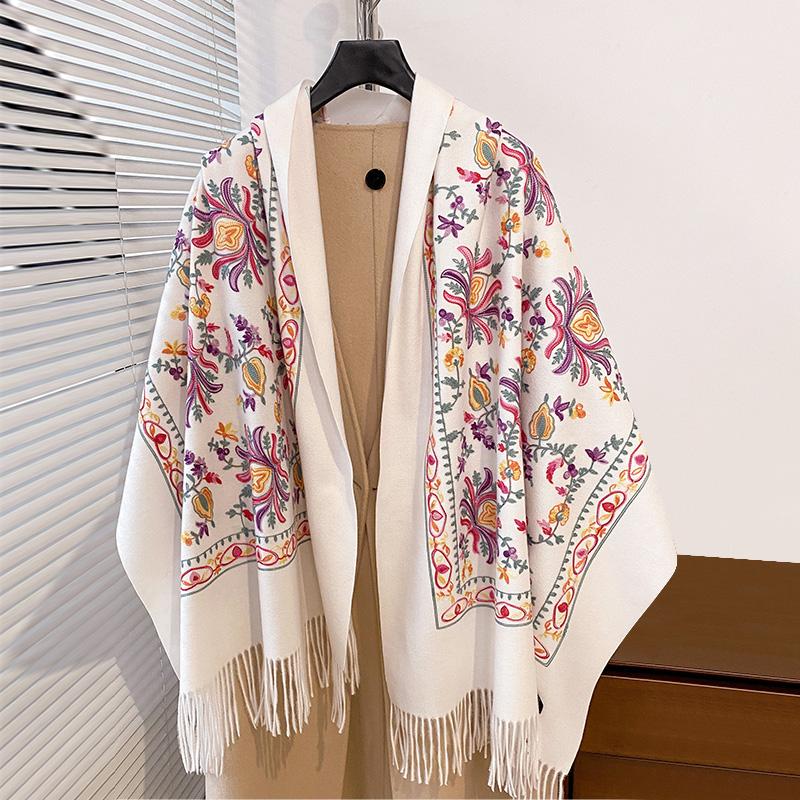 Luxury High Quality Embroidery Scarf Elegant Women Winter Thick Warm Neck Pashmina Long Fringe Scarves Lady Blanket Soft Shawl