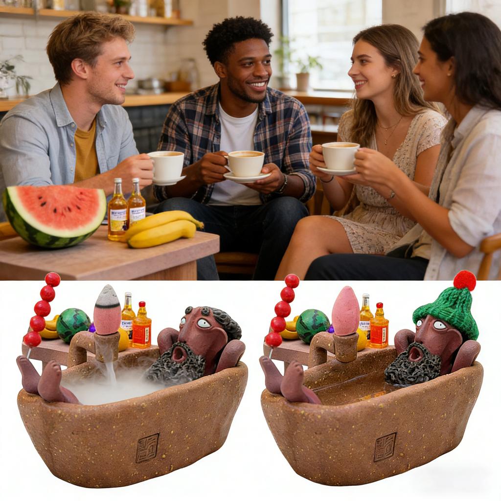 Handmade Bath Guy Ceramic Incense Holder, Hand-Pinched Ceramic Bath Guy Incense Holder, Weird Art Aroma Burner, Ashtray & Desk Decor Gift