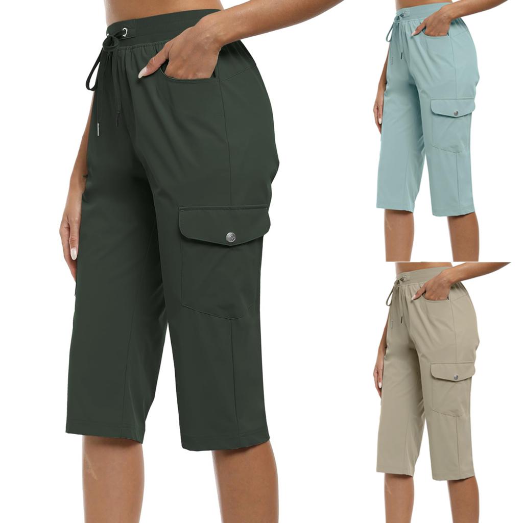CapriPants for Women Lightweight Pants for Women Casual Summer Shorts with Zipper Pockets