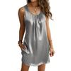 Women Square Neck Silk Satin Sleeveless Dress With Pockets