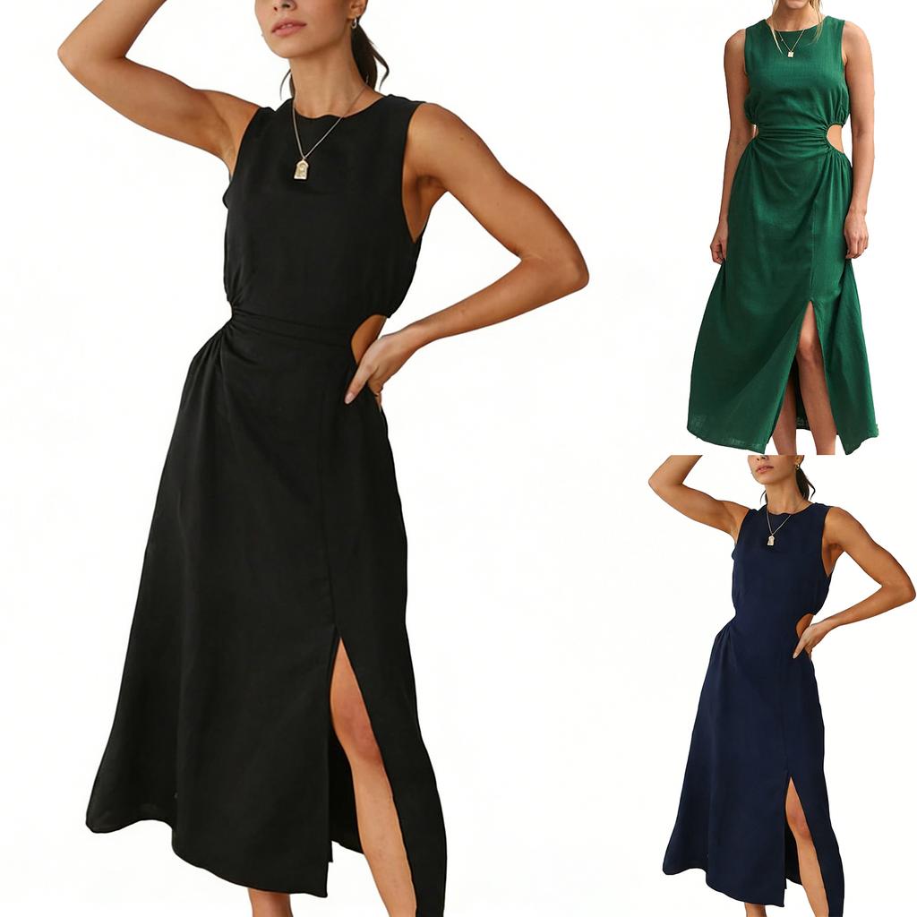 Women's Color Sleeveless Slim Fit Fashionable Long Dress