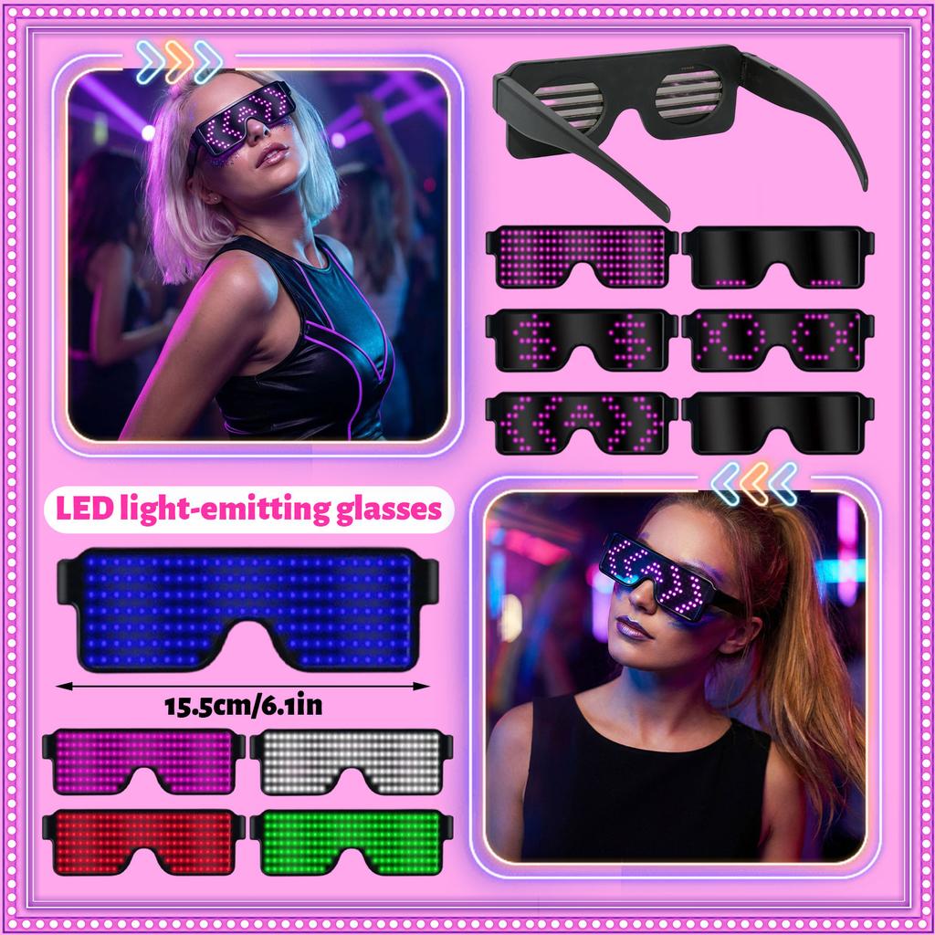 LED Light-up Glasses With Patterns, Rechargeable And Reusable, Perfect For Parties And Festive Occasions. LED Luminous Glasses: A Trendy and Fun Atmosphere Enhancer with Multiple Modes and Colorful Interaction These LED luminous glasses, based a trendy square frame design, feature 164 LED beads and 11 modes. They are both a party attention- and a personalized accessory for everyday wear, suitable for creating atmosphere in various scenarios.