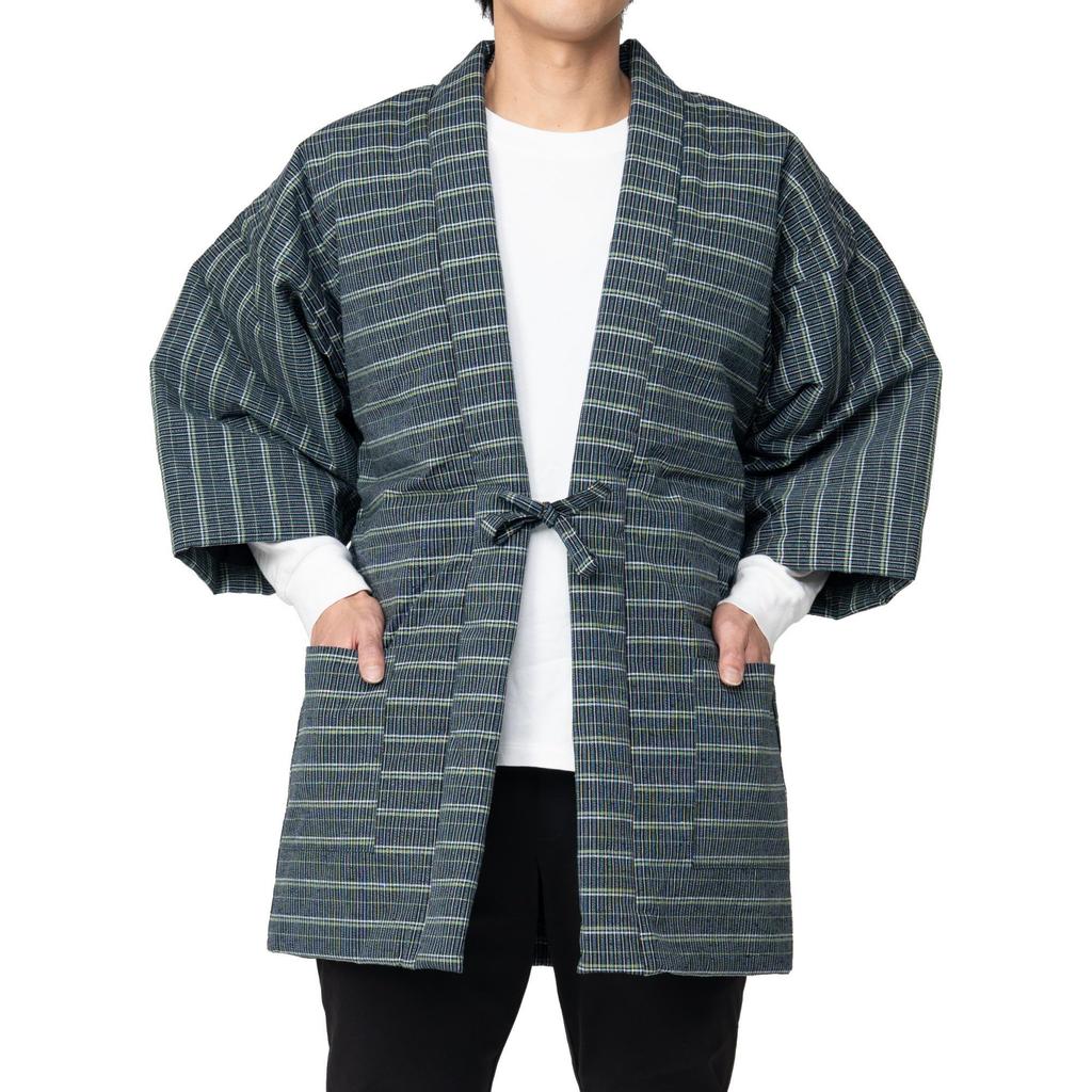 Morioru Kurume Woven Men's Hanten (Hanten), Heather Green, Made in Japan, Washable, Quilted Lining, Eco-Friendly, Dotera, Donbuku