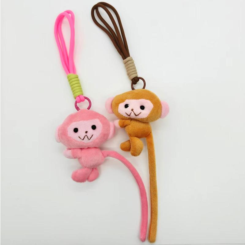 Cartoon Monkey Plush Keychain Pink Brown Long Tailed Fluffy Stuffed Doll Charms Bag Pendant Accessories Couple Gift Cute Things