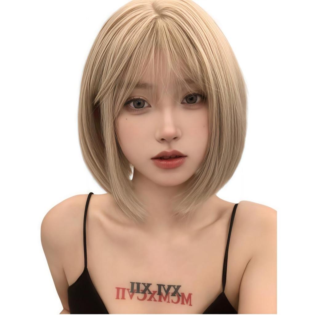 RyuuCos Women's Wig with Blunt Bangs, Straight, Short, Bob, Gold, Heat-Resistant, Perfect for Cosplay, Costumes, Halloween, Christmas, School Festival