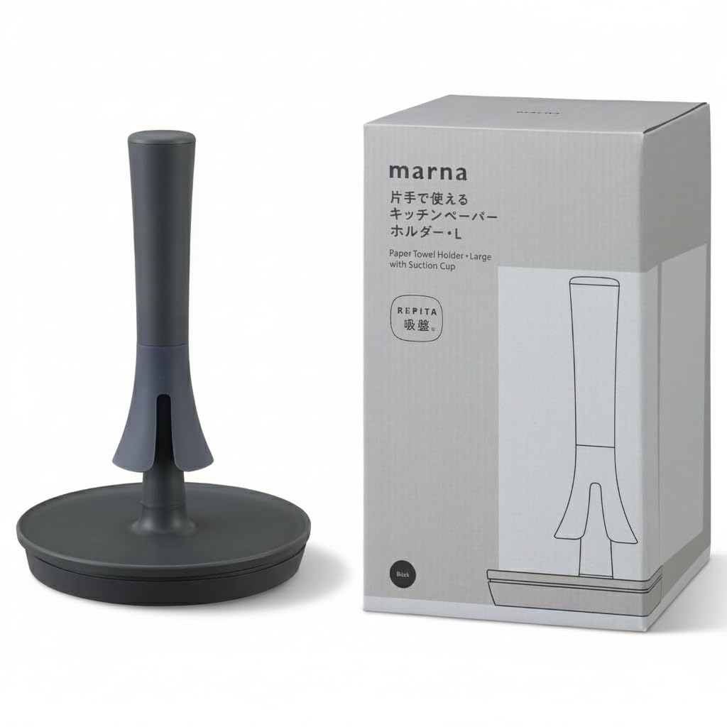 Marna Large Kitchen Towel Holder (Fits Large Paper Towels Like Costco's/Tears with One Hand) with Suction Cups for Secure Fit, Black, K816BK