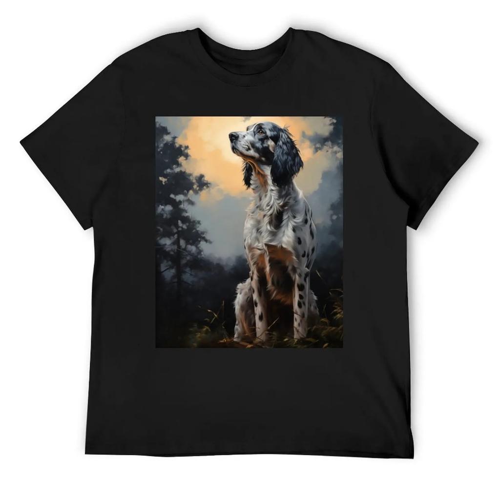 English Setter at night T-Shirt cheap stuff graphic tee shirt Men's cotton t-shirt