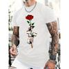 European sizes Rose Printing Men'S Crew Neck Short Sleeve T-shirt, Casual Summer T-Shirt For Daily Wear And Vacation Resorts