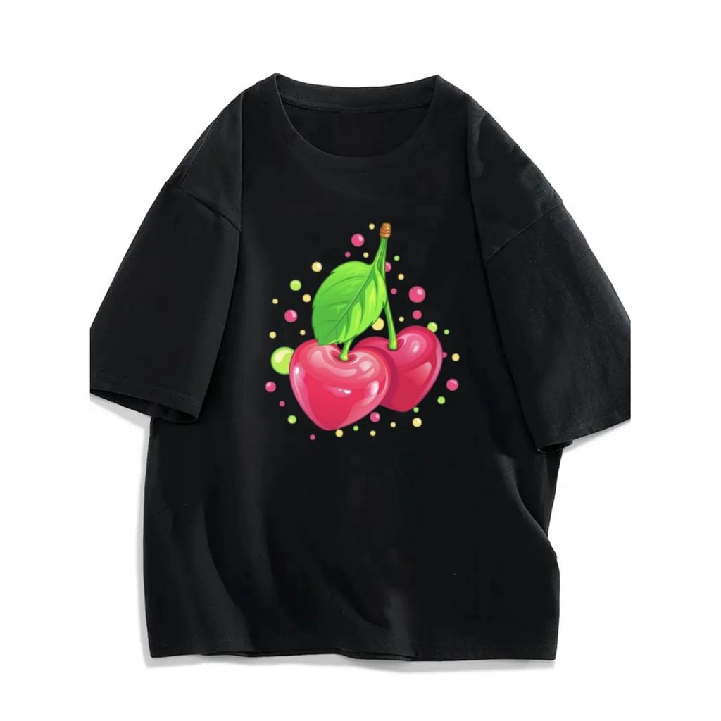 Love heart cherry print T-shirt casual and versatile style meets the needs of daily and outing wear in summer