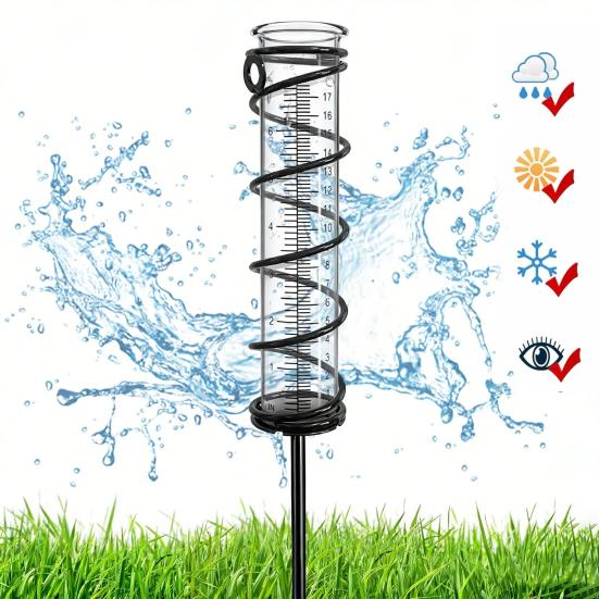 Spiral Metal Protective Cover For Enhanced Durability: Encased in a black metal spiral guard, the rain gauge is shielded against splashing rainwater and strong winds. This protective cover also guards the delicate glass tube from impacts and collisions, significantly extending the products lifespan while maintaining its functional integrity.