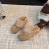 Retro velvet half-drag thick-soled heightening Birkenstocks 2025 autumn and winter new lazy people wear fluffy slippers with one foot