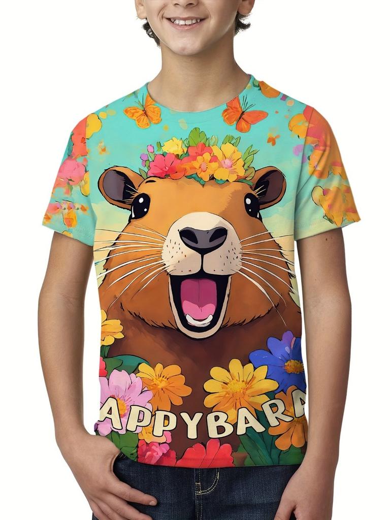 Summer Cute Capybara Boys T-Shirts Short Sleeve Children Top O-Neck Cartoon Graphic T Shirts 3D Print Kids T Shirt Girls Clothes