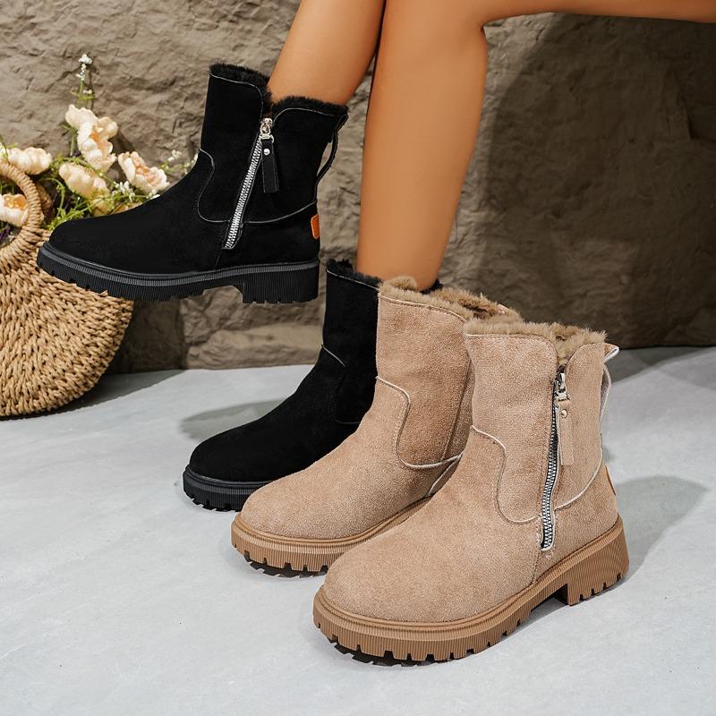 Women's Square Heel Snow Boots - Winter Thermal Fur Lined Slip-Resistant Casual Boots, Warm Fashion Ankle Boots with Thick Fleece