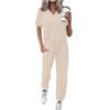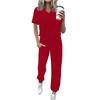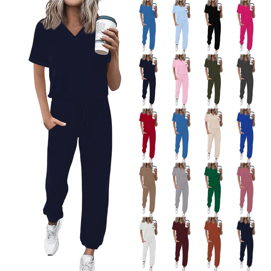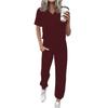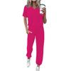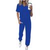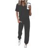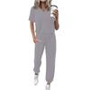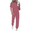 Women's Jogging Fashion V-Neck Color Short Sleeve Belt Loose Pants Tracksuit