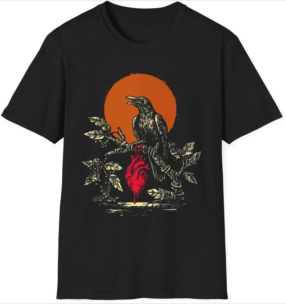Dark Style Bleeding Dawn Tee Heart Crow Raven Summer Mens and Womens Loose and Breathable Tshirt Top