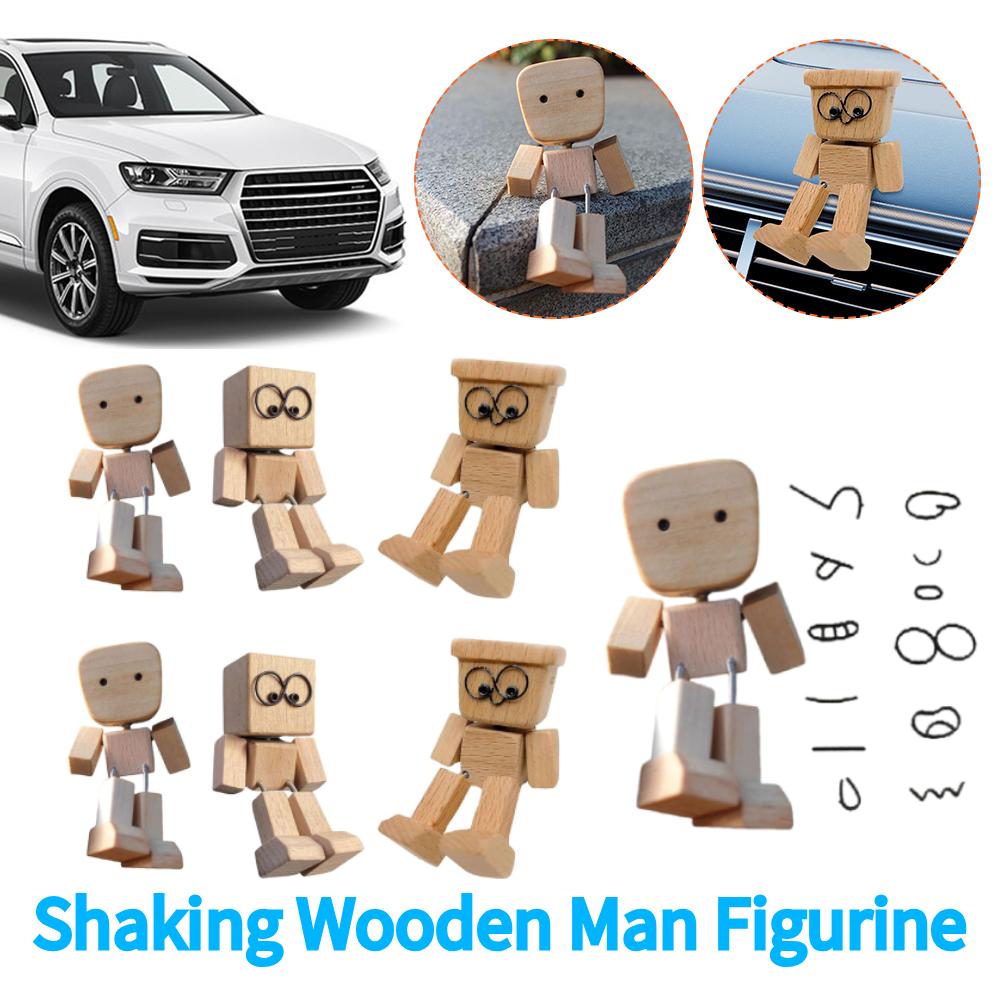 Shaking Wooden Man Figurine Funny Bobblehead Car Dashboard Decor Little Nerdy Dolls Car Accessories Car Ornaments Creative Gifts