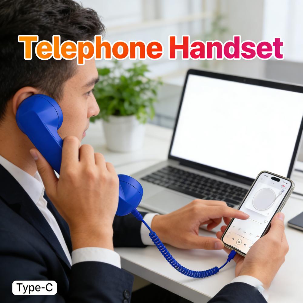 Retro Telephone Handset with Volume Slider USB-C Interface Wired Telephone Headphone for Cell Mobile Smartphones Tablet Laptop