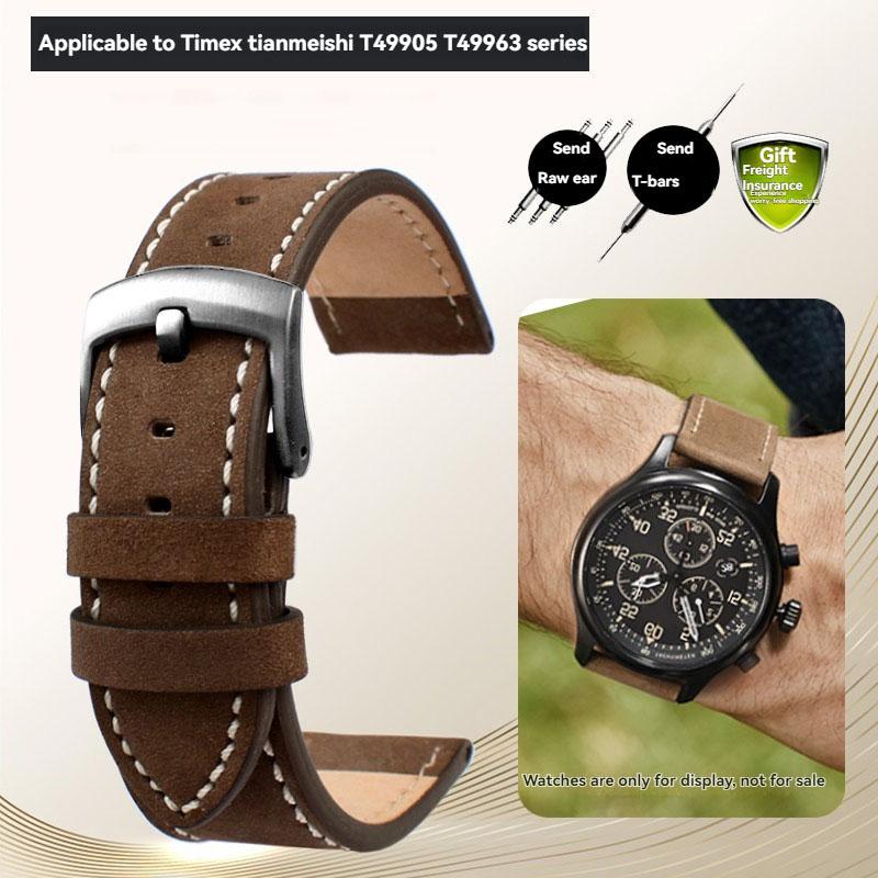 For Timex T49905 T49963 T49953 TW4B01900 Series Genuine Leather Strap Men's Frosted Cowhide Bracelet 20mm 22mm Black Brown
