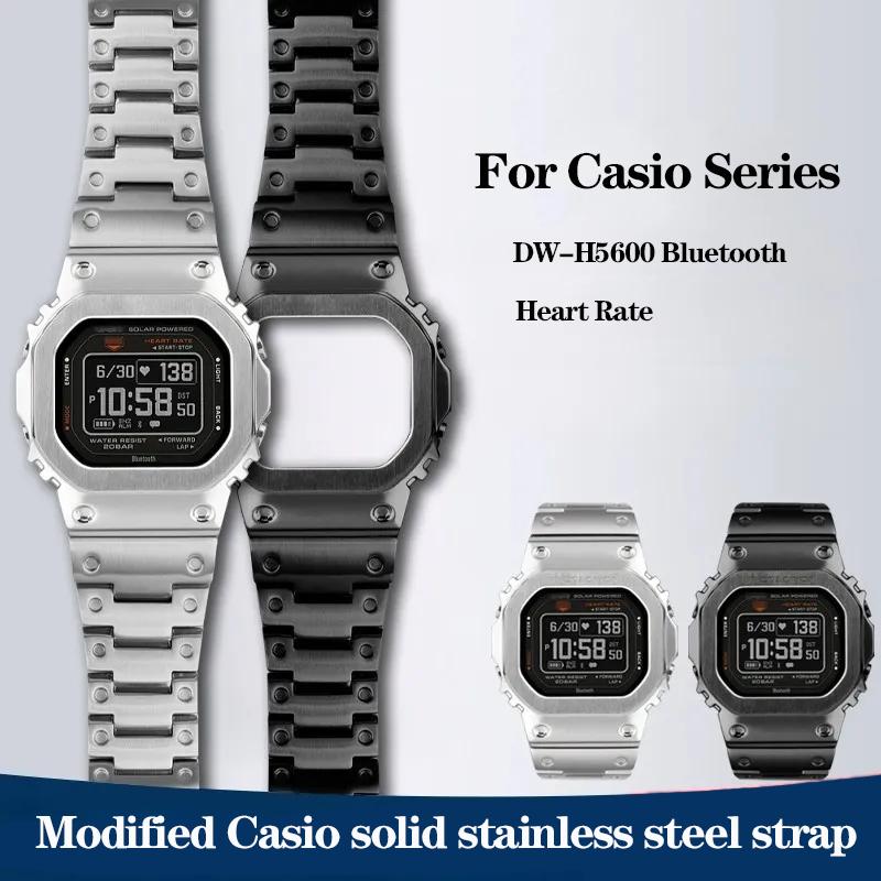 Modified Watch Strap Bezel for G-SHOCK Casio DW-H5600 DWH5600 Bluetooth Heart Rate Solid Stainless Steel Case Watch Band Chain