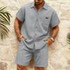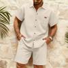 Men's Stylish Casual Collarless Short-sleeved Shirt - Men's Short-sleeved Top And Shorts Two-piece Set